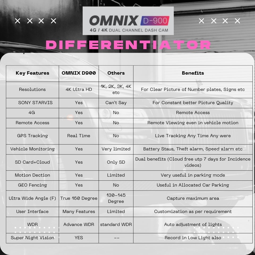 After doing lot of market analysis I have purchased OMNIX D900 and happy on my decision. Nice Dash cam with live 4G features which I can remote access any time. other dash cam which are there in market don’t have this useful remote access features. Strongly recommended.
